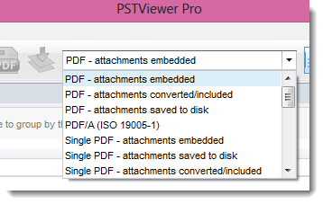 The Pst Viewer Pro main menu allows you to select the export profile you require. Several different methods of export-to-pdf operations are supported.