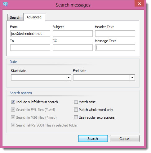 | Advanced Search of Pst/Ost Email Files |