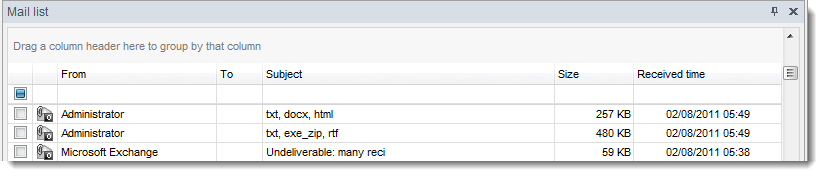| Mail List Window |